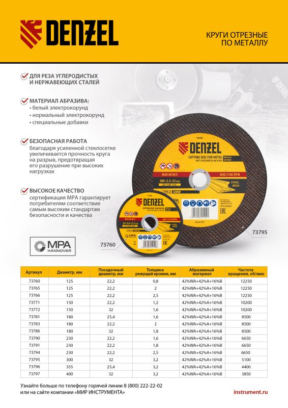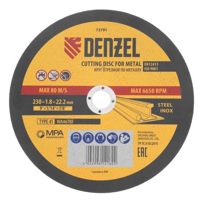 Круг отрезной по металлу, 230 х 1,8 х 22,2 мм, WA46TBF// Denzel, 73791