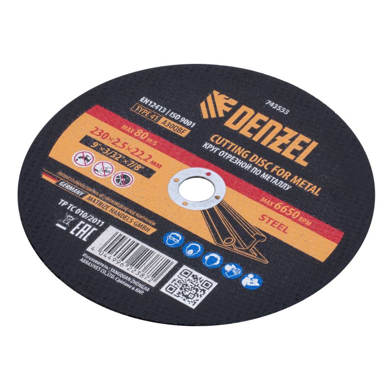 Круг отрезной по металлу, 230 х 2,5 х 22,2 мм, A30QBF Denzel, 743553