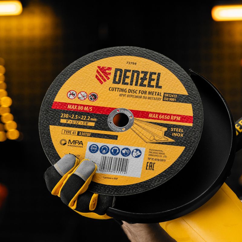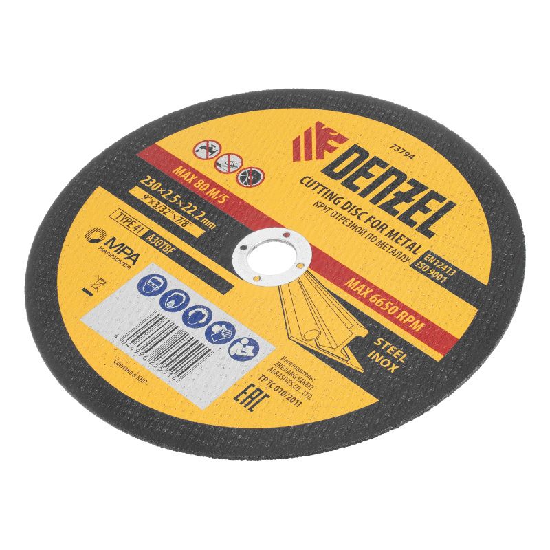 Круг отрезной по металлу Denzel 230 х 2,5 х 22,2 мм, A36TBF, 73794 — надёжность и качество для ваших задач