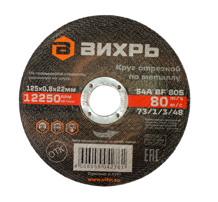 Круг отрезной по металлу Вихрь 125х0,8х22 мм, 73/1/3/48