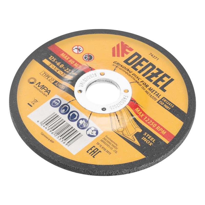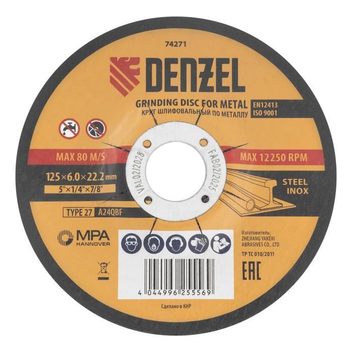 Круг шлифовальный по металлу, 125 х 6,0 х 22,2 мм, A24QBF// Denzel, 74271