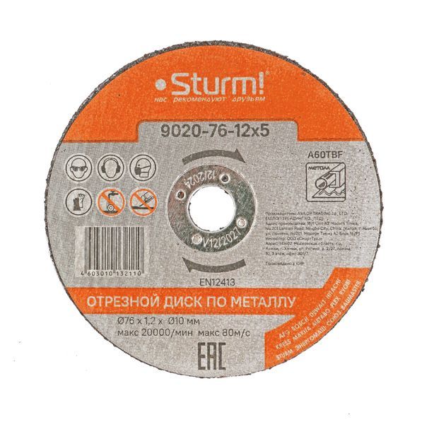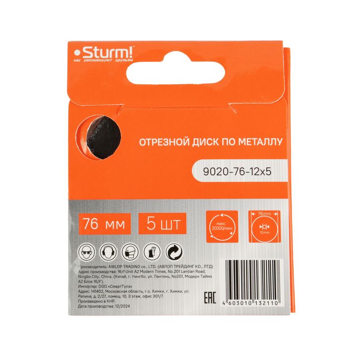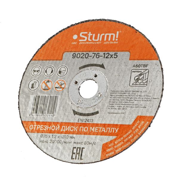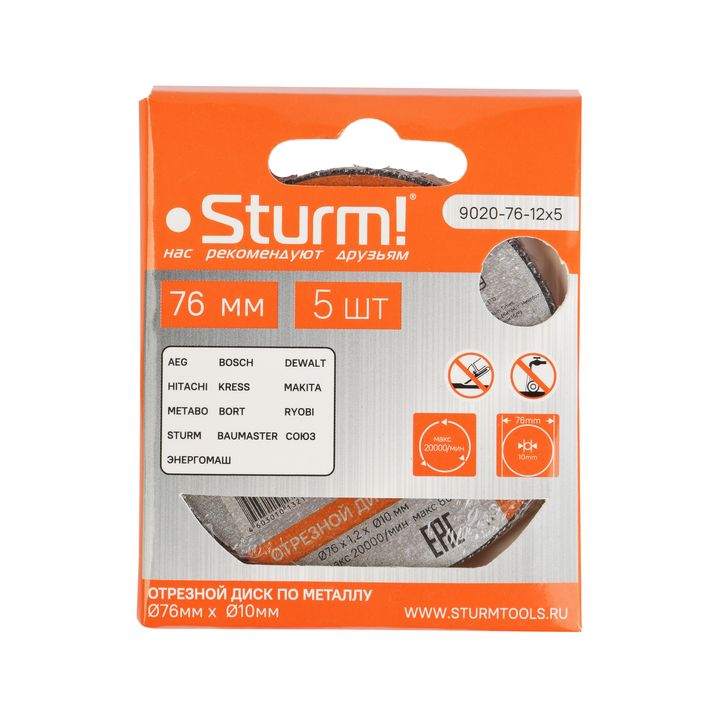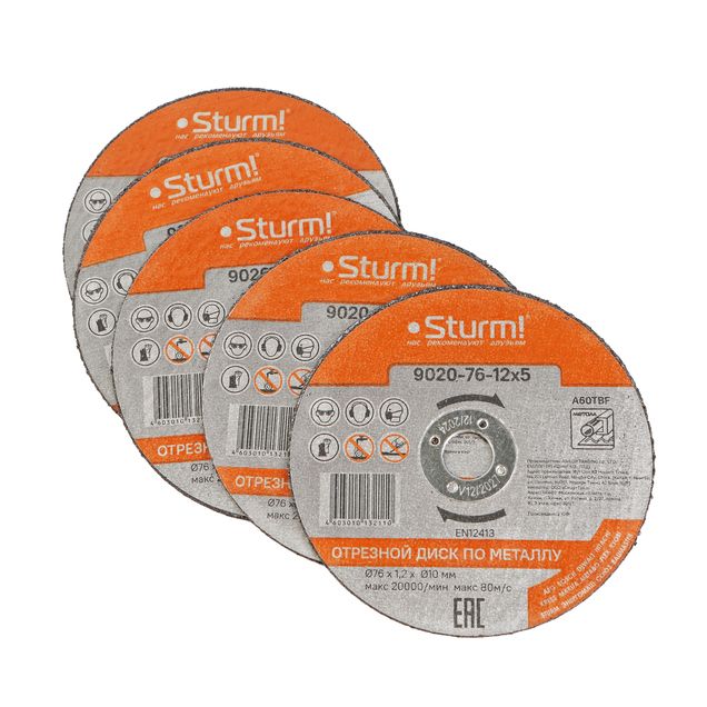 Диск отрезной по металлу, размер 76x1.2x10, 5 шт., для CAG1276C Sturm, 9020-76-12x5