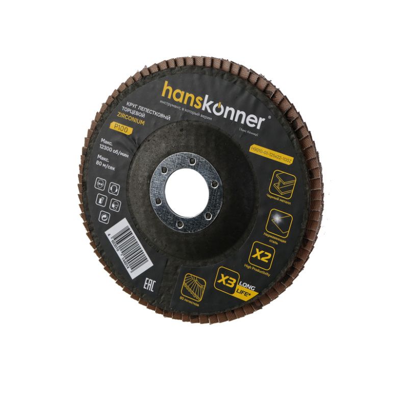Круг зачистной лепестковый ЦИРКОНИЕВЫЙ 125х22, зерно 100, Hanskonner, H9010-01-125x22-100Z