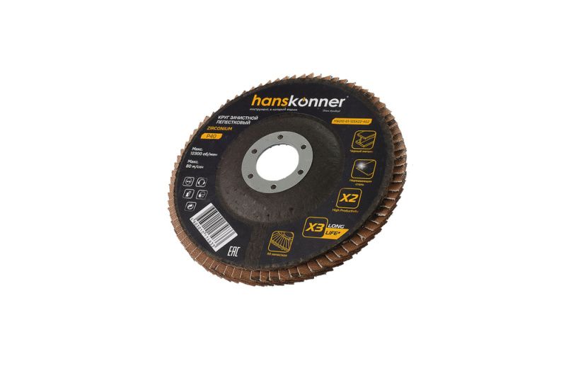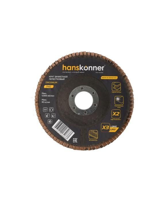 Круг зачистной лепестковый ЦИРКОНИЕВЫЙ 125х22, зерно 40, Hanskonner, H9010-01-125x22-40Z