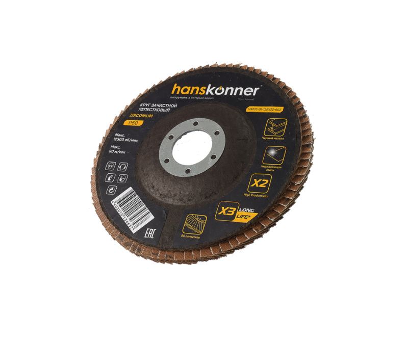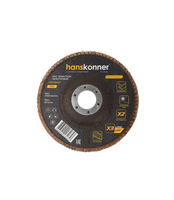 Круг зачистной лепестковый ЦИРКОНИЕВЫЙ 125х22, зерно 60, Hanskonner, H9010-01-125x22-60Z