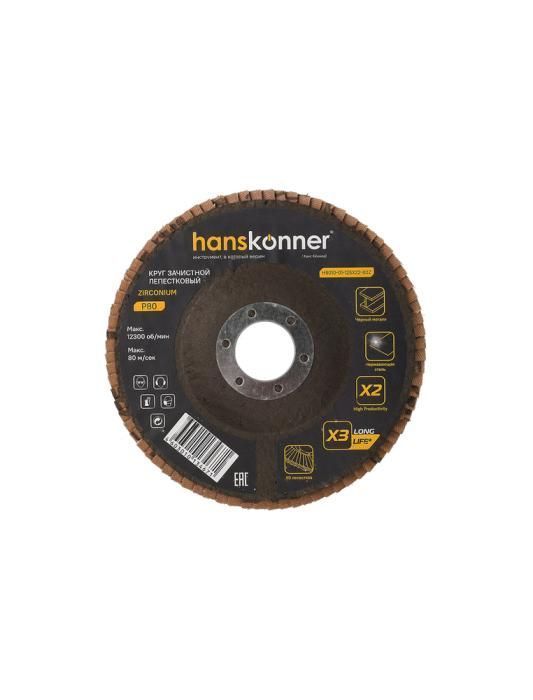 Круг зачистной лепестковый ЦИРКОНИЕВЫЙ 125х22, зерно 80, Hanskonner, H9010-01-125x22-80Z