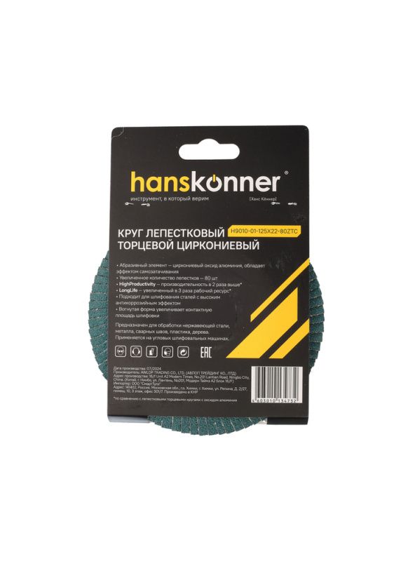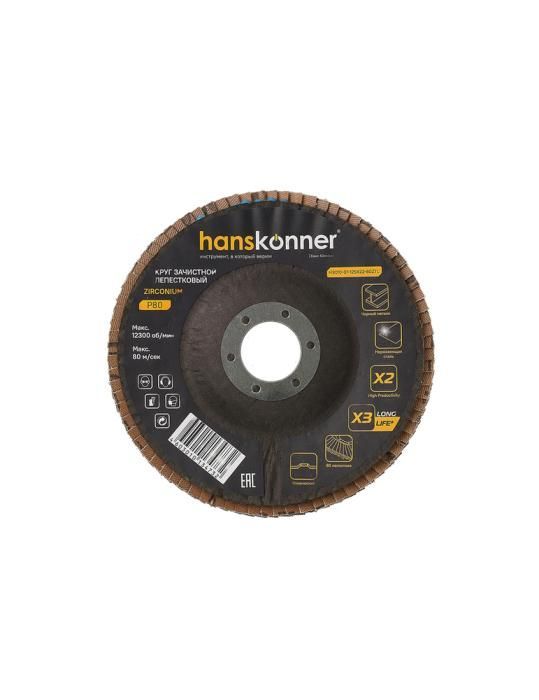 Круг зачистной лепестковый ЦИРКОНИЕВЫЙ, конический 125х22, зерно 80, Hanskonner, H9010-01-125x22-80ZTC