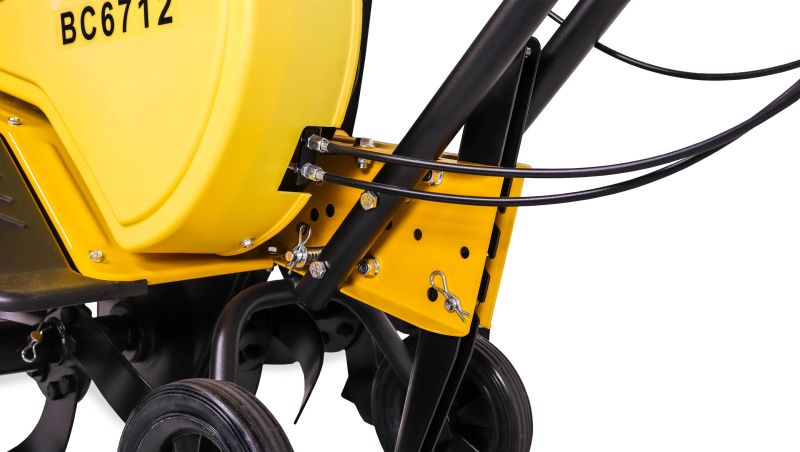 Культиватор Champion 6712 также имеет транспортировочное колесо, которое обеспечивают устойчивость и легкость управления. Благодаря этому вы сможете легко маневрировать на участке и обрабатывать почву в труднодоступных местах.