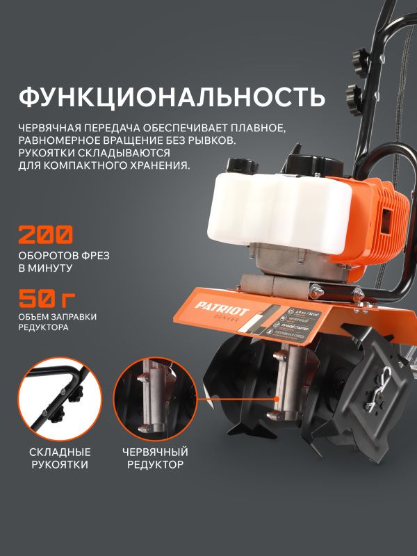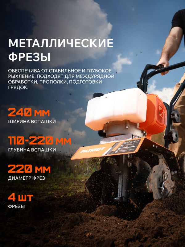 Качество и надёжность. Бренд Patriot известен на рынке садового оборудования своей надёжностью и качеством. Вы можете быть уверены в стабильности работы культиватора.