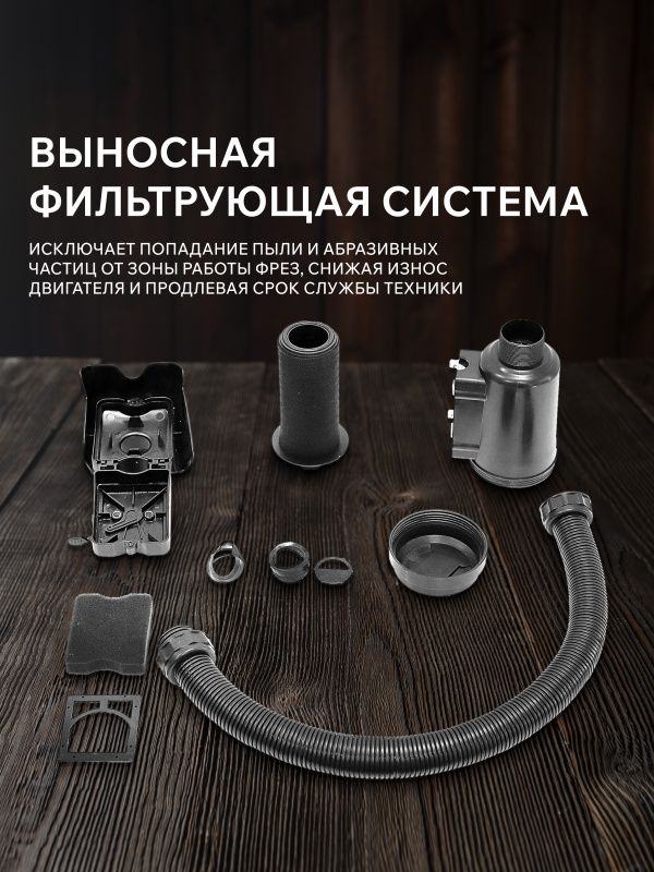 - Компактный и маневренный, что обеспечивает легкое управление и возможность работы на маленьких участках.