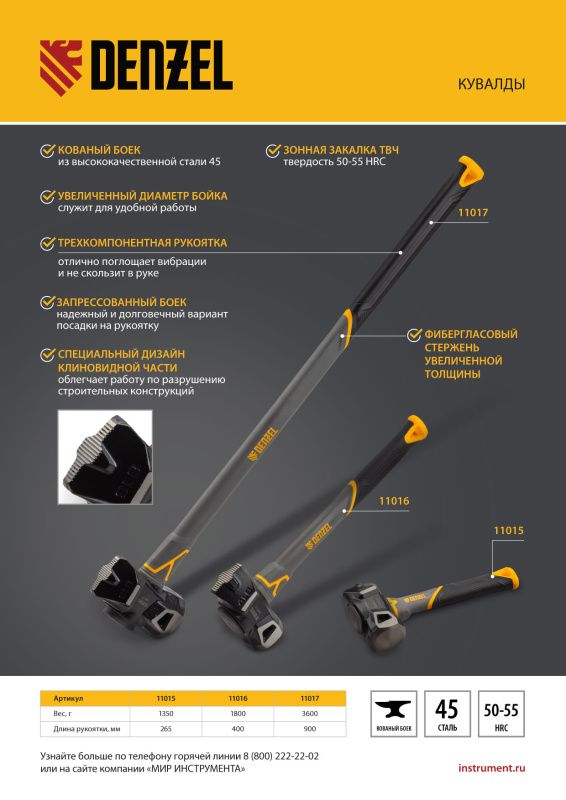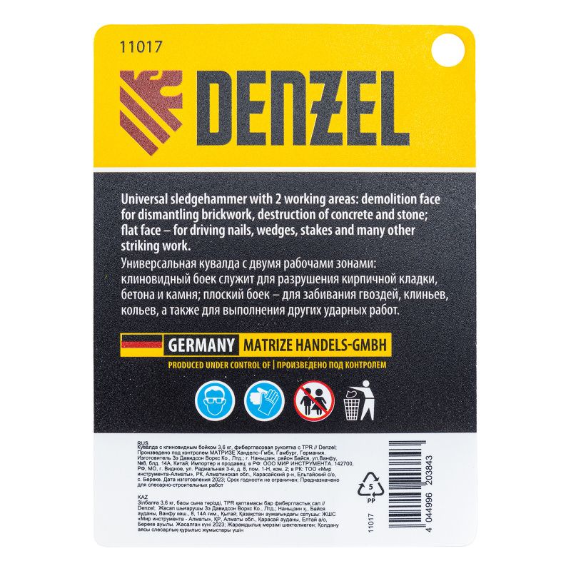 Кувалда с клиновидным бойком 3,6 кг, фибергласовая рукоятка c TPR Denzel, 11017