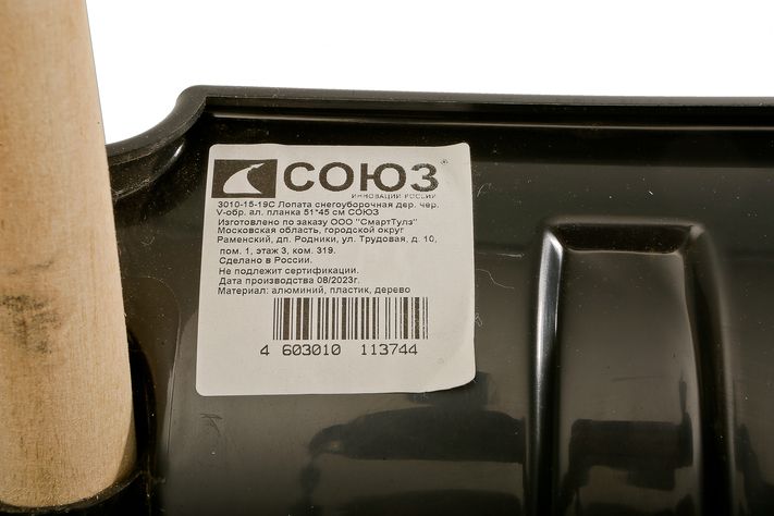 Лопата снегоуборочная 51х45см, пластиковый ковш, деревянный черенок, СОЮЗ, 3010-15-19С