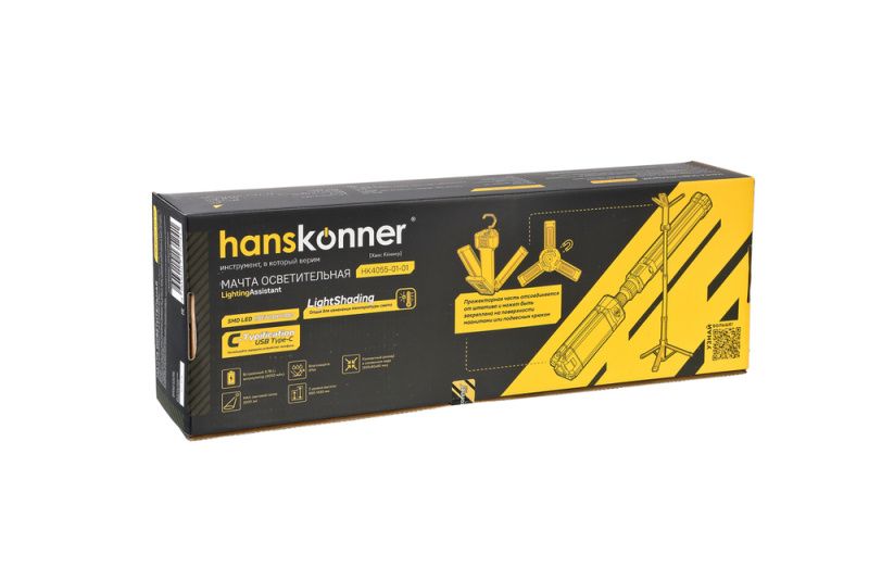 Мачта осветительная аккумуляторная, 2000лм, 3 режима, 660-1430мм, Hanskonner, HK4055-01-01