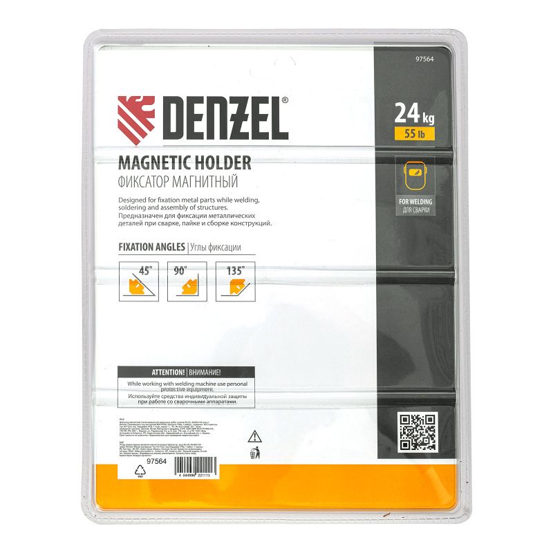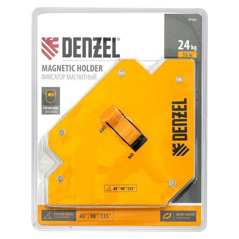 Фиксатор магнитный отключаемый для сварочных работ усилие 55 LB, 45х90х135 град. Denzel, 97564
