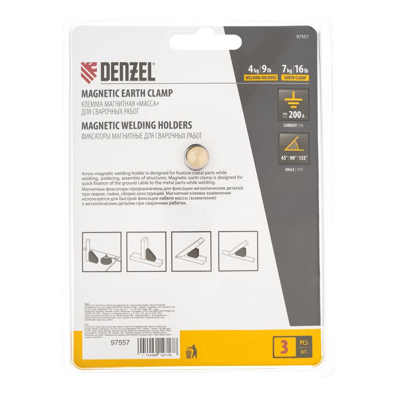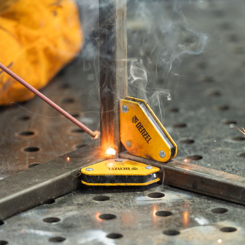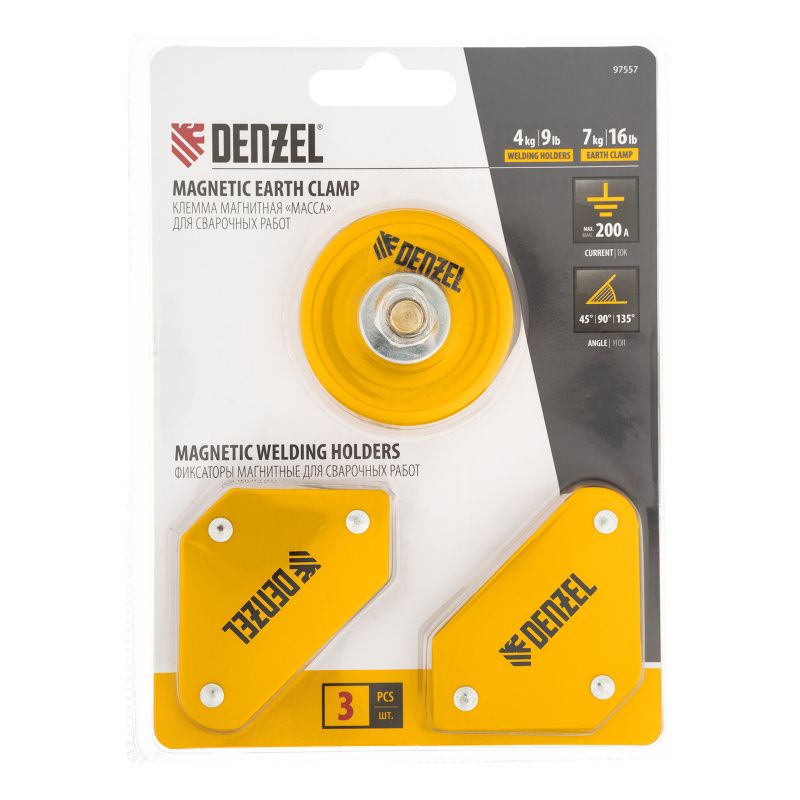 Набор из 2 магнитных сварочных фиксаторов и магнитной клеммы "масса" Denzel, 97557