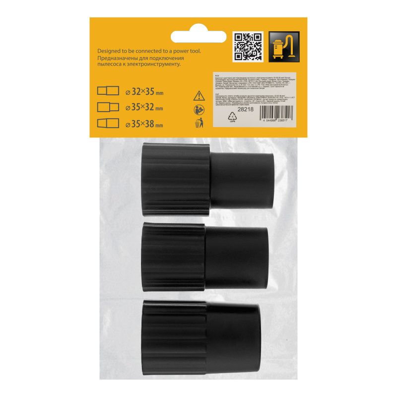 Комплект адаптеров для подключения пылесоса к электроинструменту 32-35-38 мм// Denzel, 28218