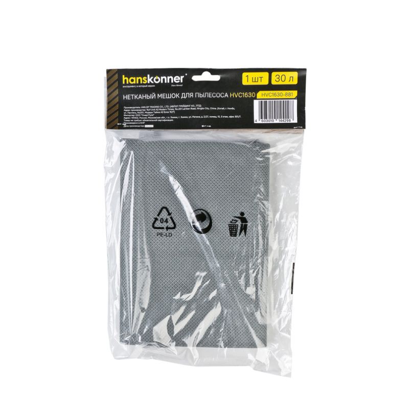 Нетканый мешок для пылесоса HVC1630, 30л Hanskonner, 1шт/уп, HVC1630-881