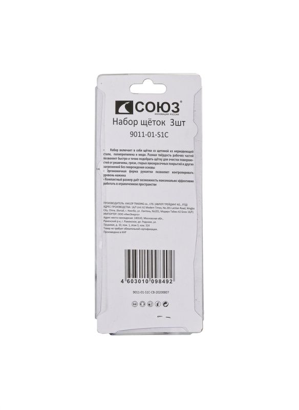 Набор щеток 33x8 мм, 3 шт., медь, полипроп., нерж. сталь СОЮЗ, 9011-01-S1С
