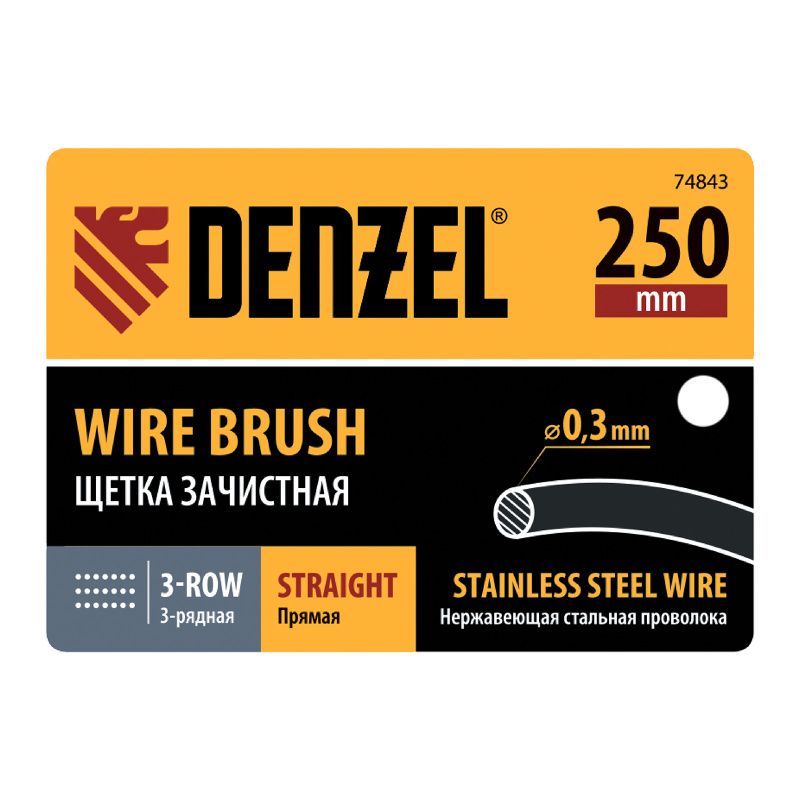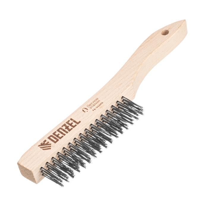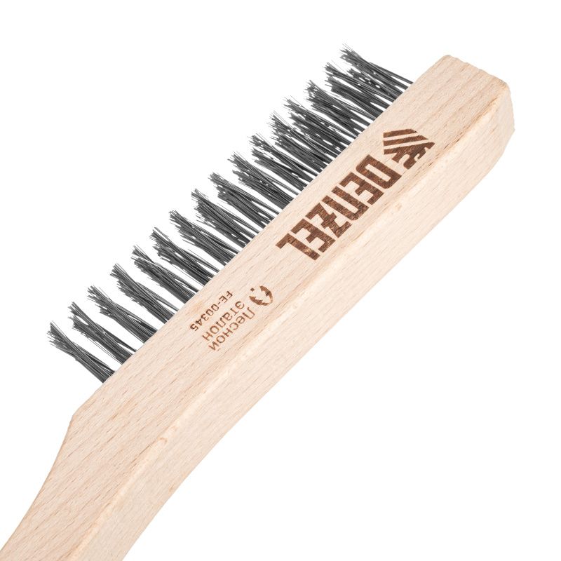 Щетка зачистная 3-х рядная, прямая проволока из нержавеющей стали с деревянной ручкой, EFP// Denzel, 74843