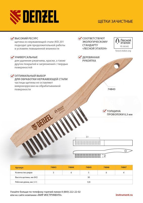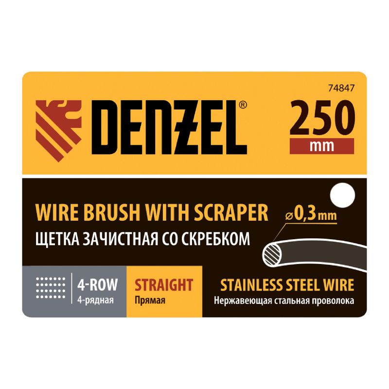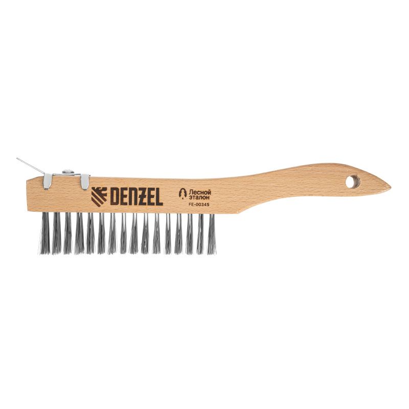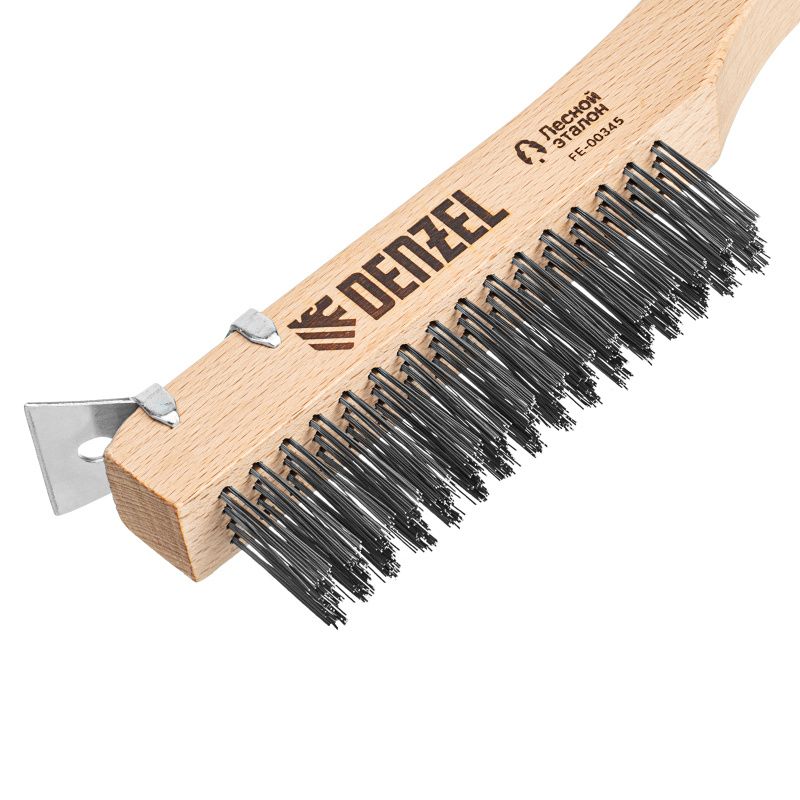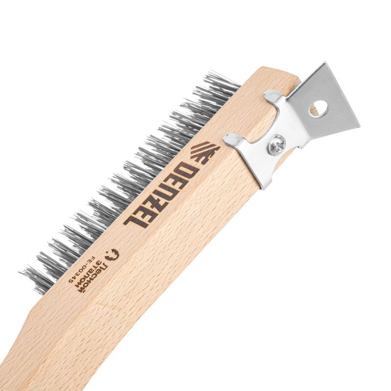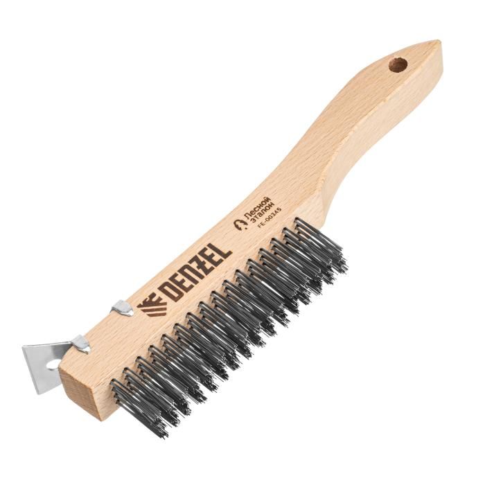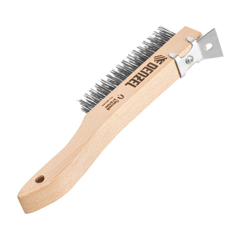 Щетка зачистная 4-х рядная, проволока из нержавеющей стали с деревянной ручкой скребок, EFP// Denzel, 74847