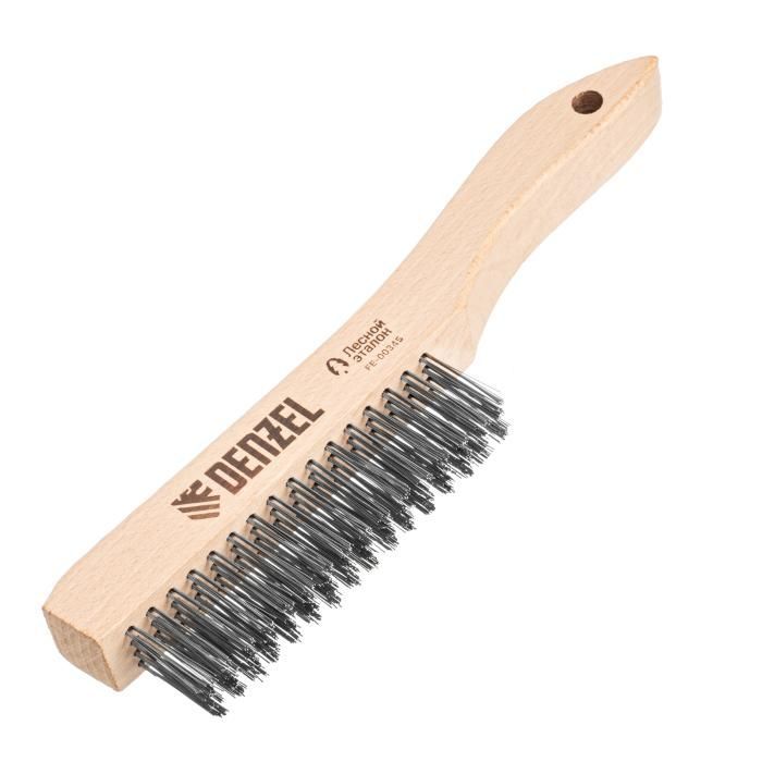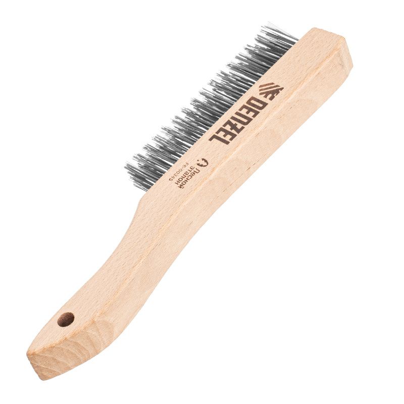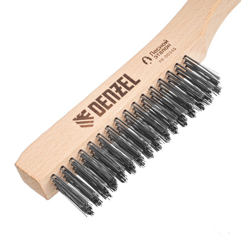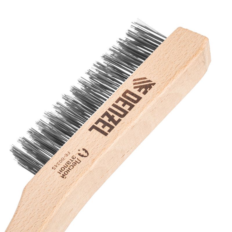 Щетка зачистная 4-х рядная, прямая проволока из нержавеющей стали с деревянной ручкой, EFP// Denzel, 74844