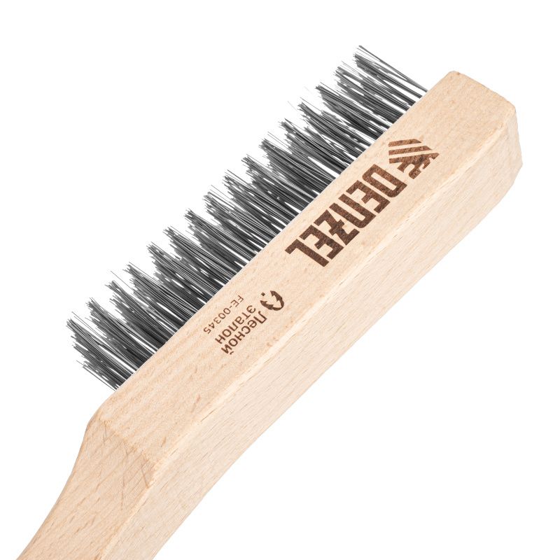 Щетка зачистная 5-и рядная, прямая проволока из нержавеющей стали с деревянной ручкой, EFP// Denzel, 74845