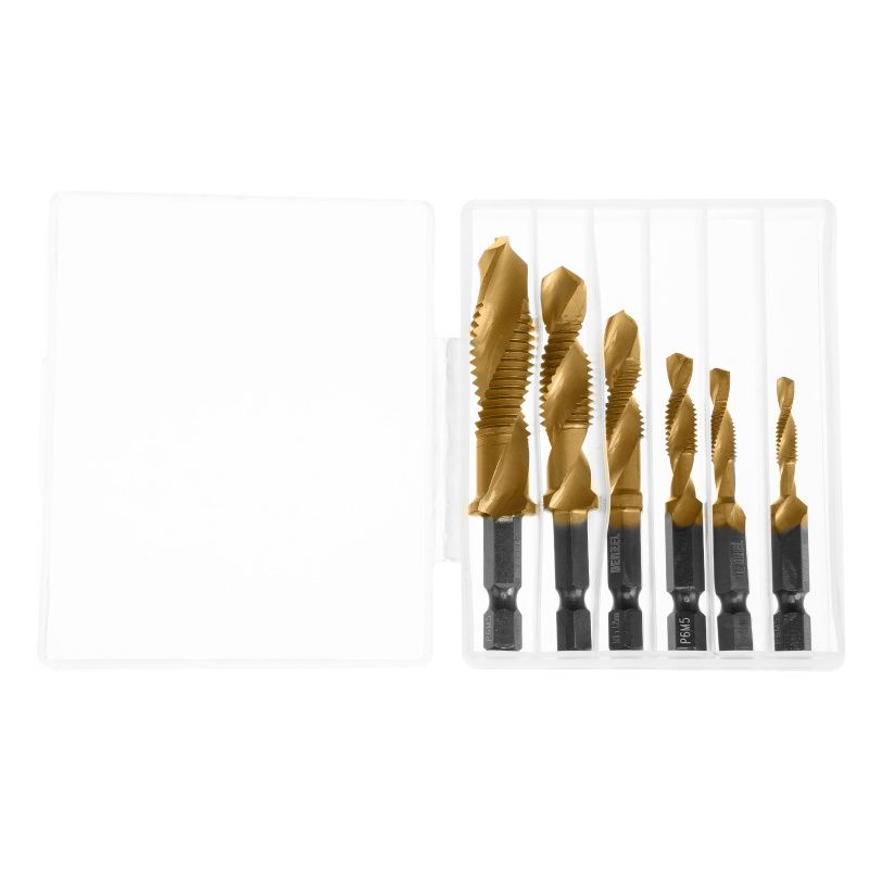 | Комплектация* | сверло-метчик m4 x 0,7 мм - 1 шт, сверло-метчик m5 x 0,8 мм - 1 шт, сверло-метчик m6 x 1,0 мм - 1 шт, сверло-метчик m8 x 1,25 мм - 1 шт, сверло-метчик m10 x 1,5 мм - 1 шт, сверло-метчик m12 x 1,75 мм - 1 шт |