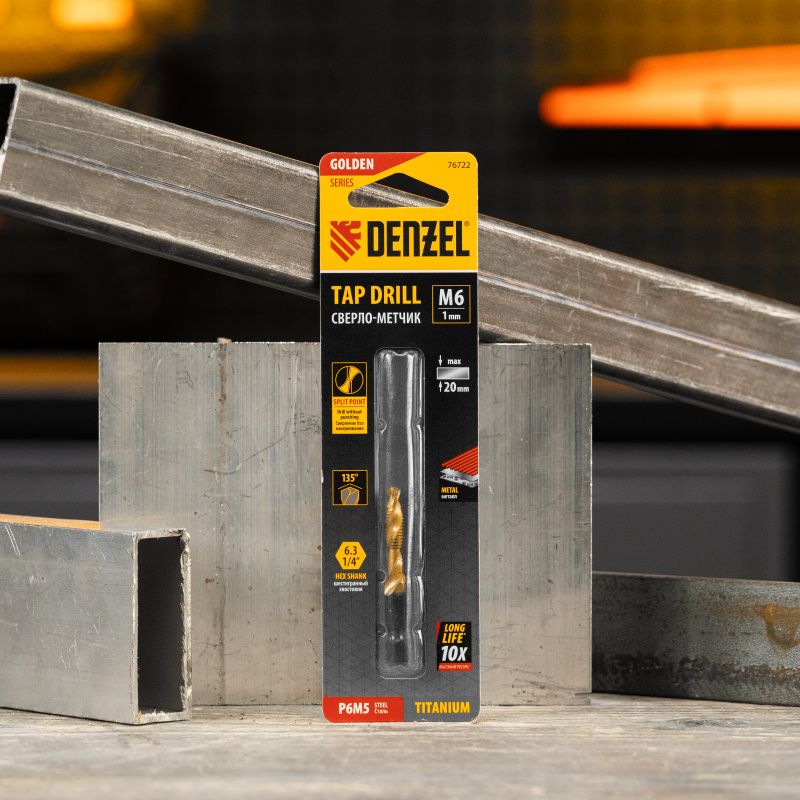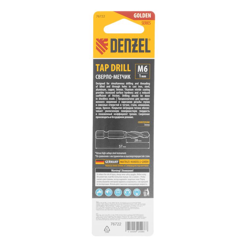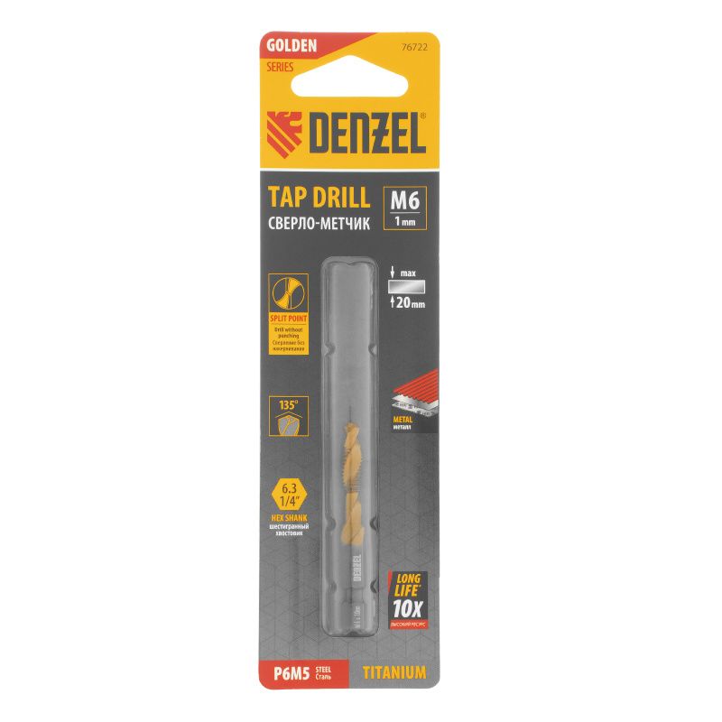 Сверло-метчик М6 х 1,0 мм, Р6М5// Denzel, 76722