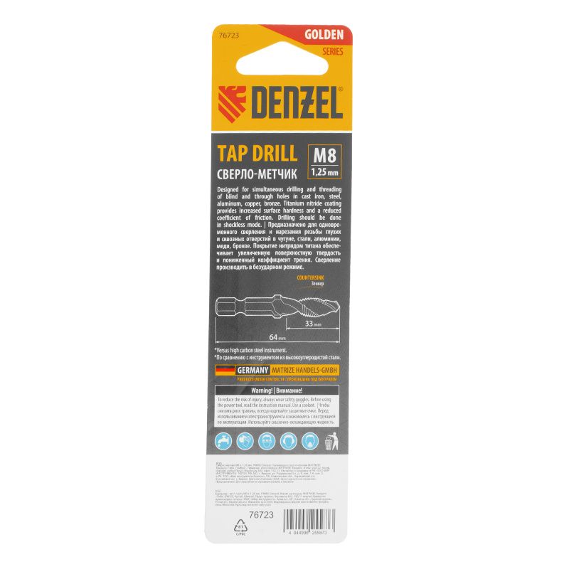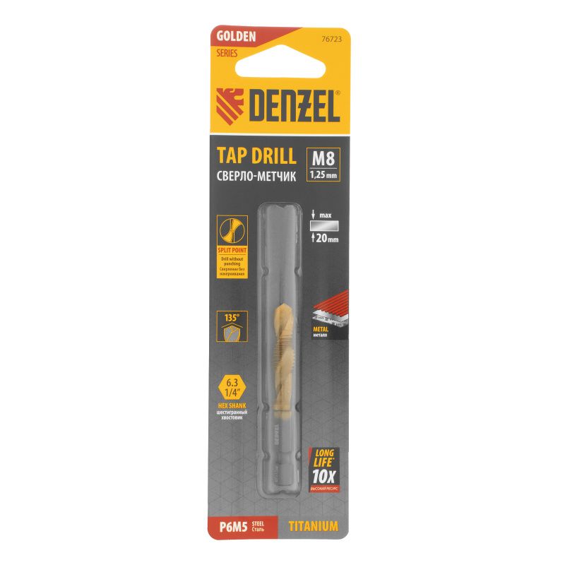 Сверло-метчик М8 х 1,25 мм, Р6М5// Denzel, 76723