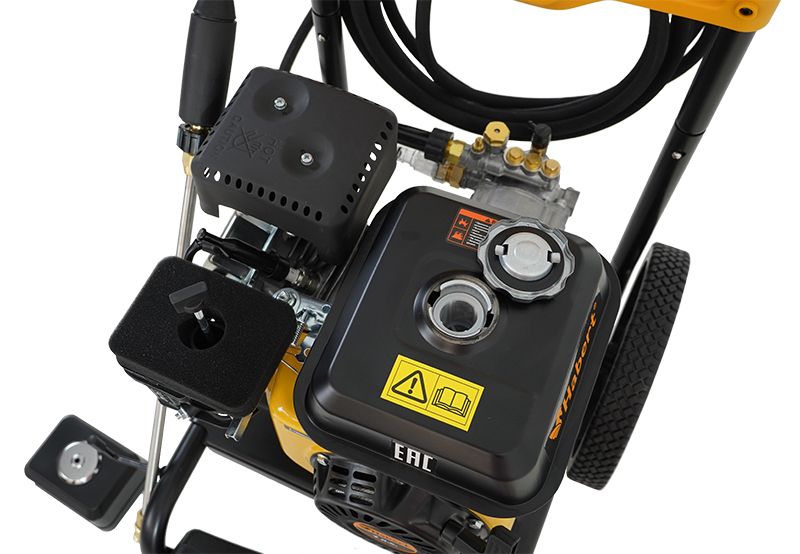 Мобильность. Мойка работает на бензине, что обеспечивает её мобильность и независимость от источников электроэнергии. Это особенно важно при работе на больших территориях или в местах, где нет доступа к электросети.