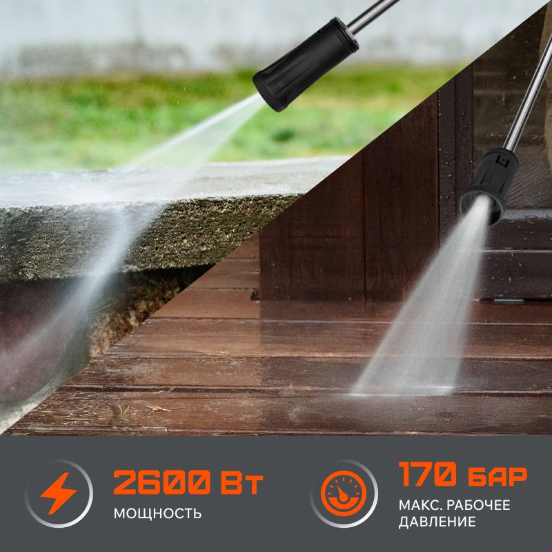 Одной из главных особенностей минимойки ПАТРИОТ GT 970 Imperial является ее высокая производительность. С помощью мощного двигателя мощностью 2600 Вт и рабочего давления до 170 бар, этот моющий аппарат легко справляется с самыми сложными загрязнениями. Благодаря этому, вы сможете очистить не только автомобиль, но и дорожные плиты, фасады зданий, террасы и многое другое.