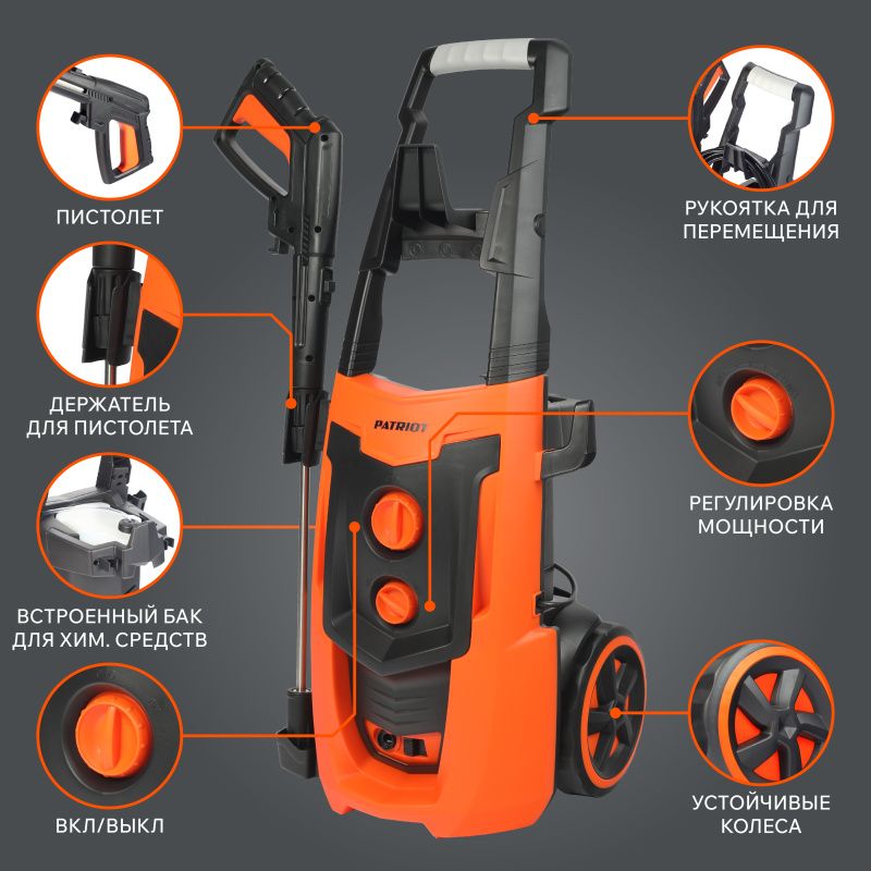 С минимойкой ПАТРИОТ GT 750 Imperial вы сможете легко и быстро очистить автомобиль, мотоцикл, велосипед, садовую мебель, террасу, фасад здания и многое другое. Благодаря высокому давлению воды до 140 бар и производительности до 7,5 литров в минуту, этот моющий аппарат справляется с самыми сложными загрязнениями.