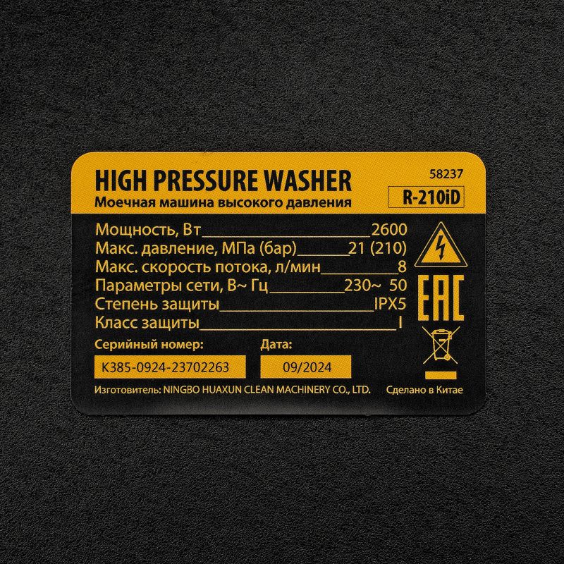 Моечная машина высокого давления Denzel R-210iD, 58237