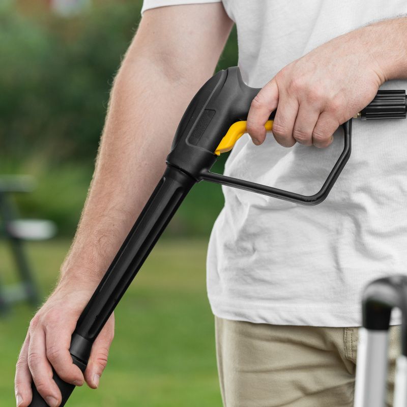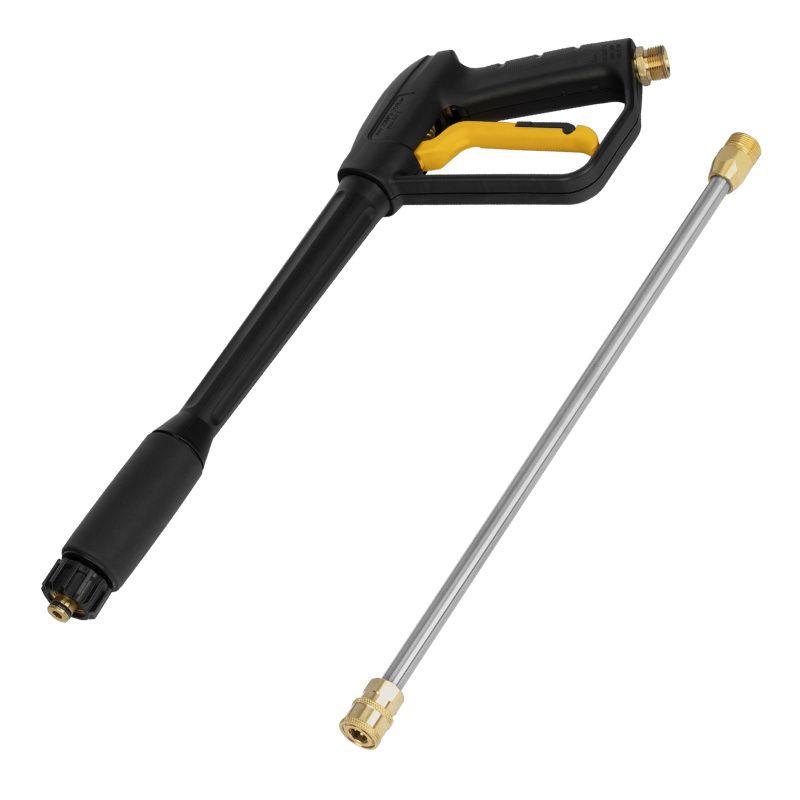 мойка высокого давления, шланг высокого давления, пистолет моечный, насадка-удлинитель, форсунки 4 шт., пеногенератор с бачком для моющего средства, входной штуцер с фильтром, быстросъемный коннектор шланга, игла для прочистки сопла, инструкция по эксплуатации с гарантийным талоном