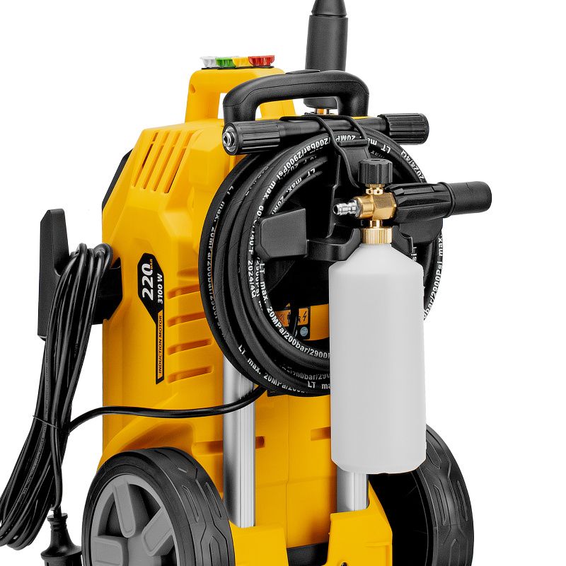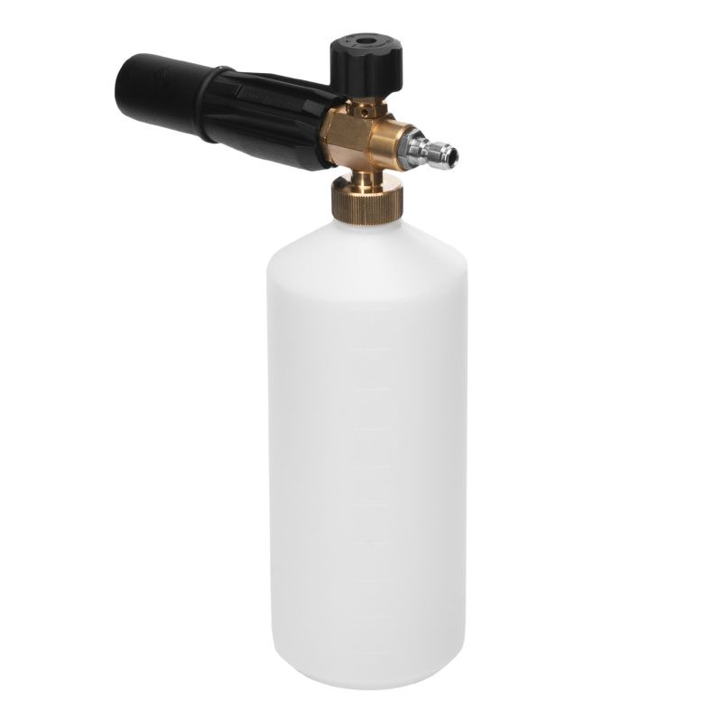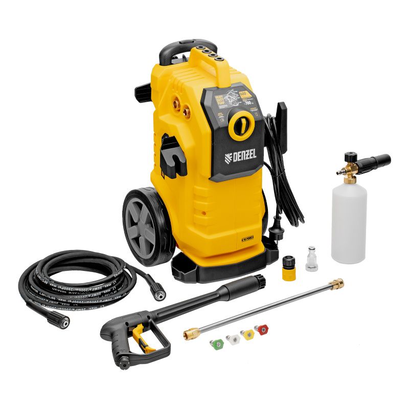 мойка высокого давления - 1штшланг высокого давления - 1 шт пистолет моечный - 1 шт насадка-удлинитель - 1 штфорсунки - 4 шт пеногенератор с бачком для моющего средства - 1 шт входной штуцер с фильтром - 1 шт быстросъемный коннектор шланга - 1 шт игла для прочистки сопла 1 - шт инструкция по эксплуатации с гарантийным талоном