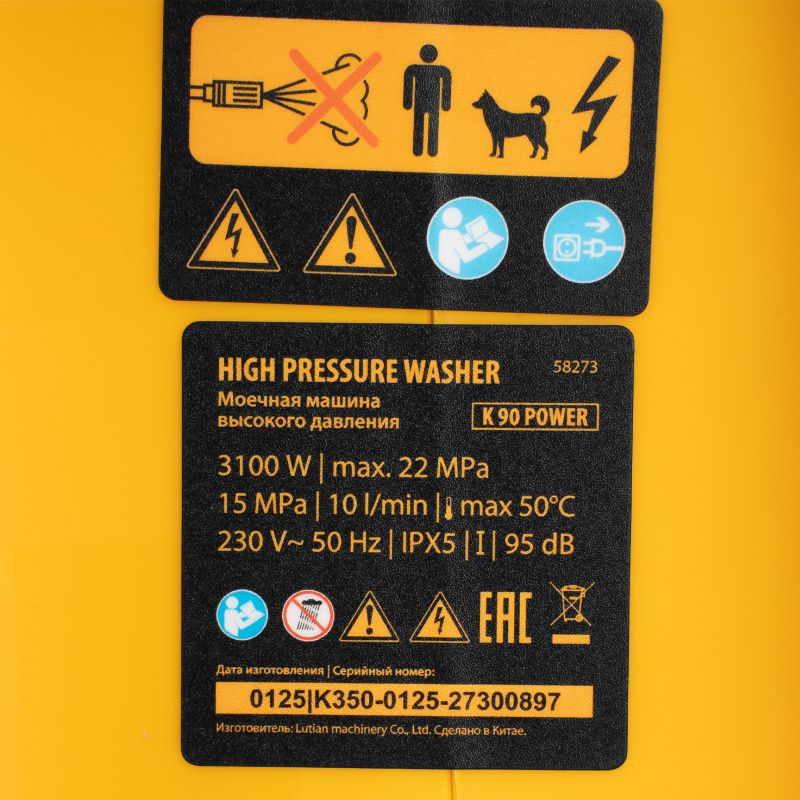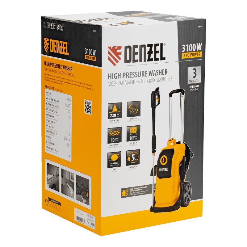 Моечная машина высокого давления K 90 Power, 3100 Вт, 220 бар, 600 л/ч, асинх. двиг.// Denzel, 58273