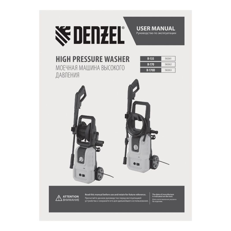 Моечная машина высокого давления R-170, 1800 Вт, 170 бар, 380 л/ч// Denzel, 58262
