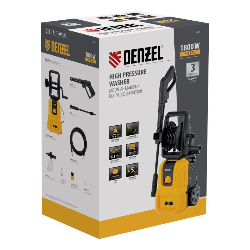 Моечная машина высокого давления R-170D, 1800 Вт, 170 бар, 380 л/ч, с барабаном// Denzel, 58263