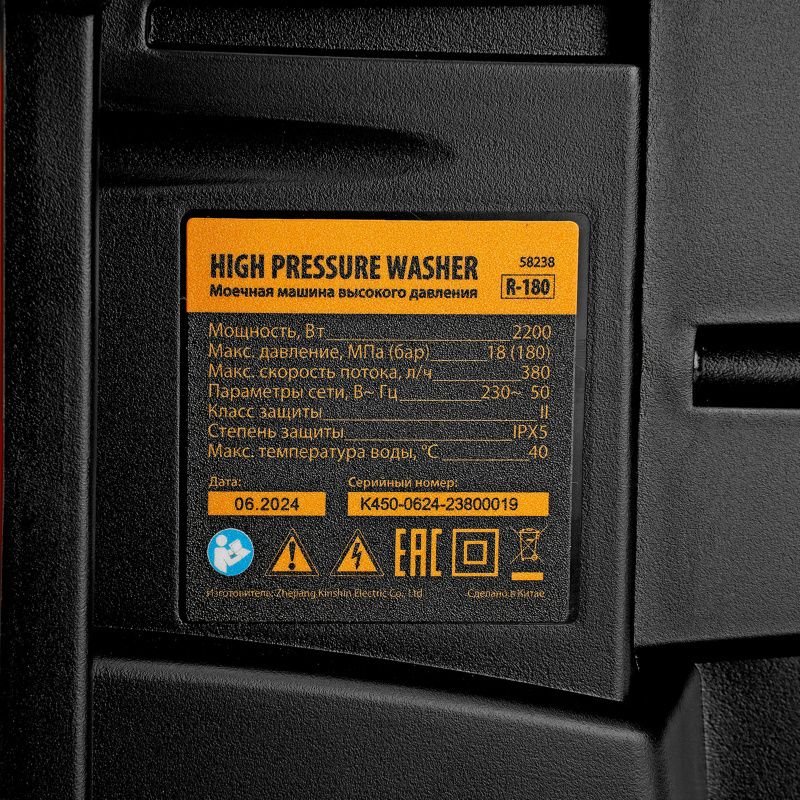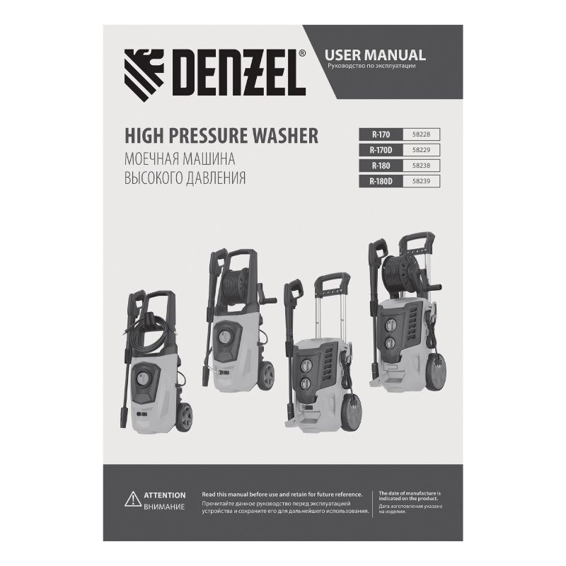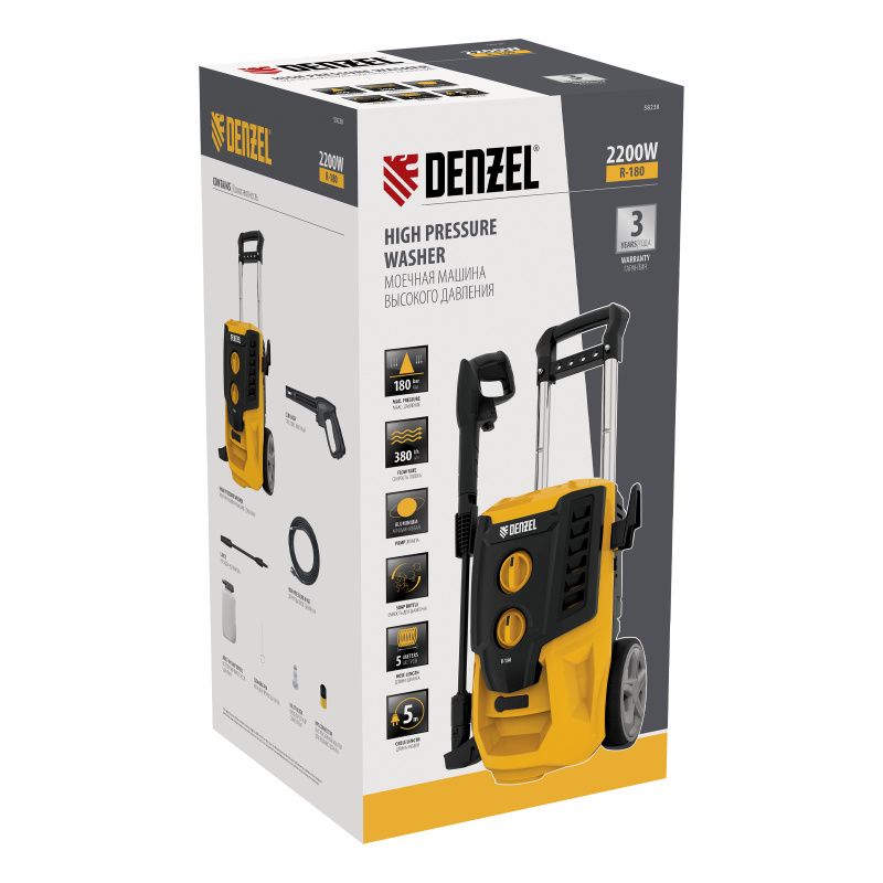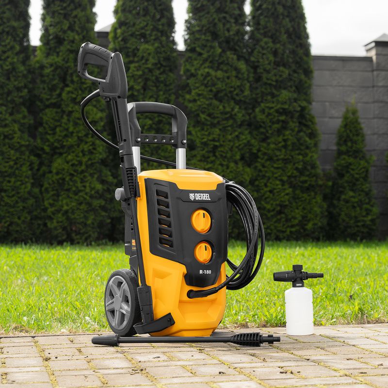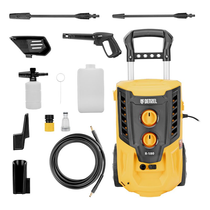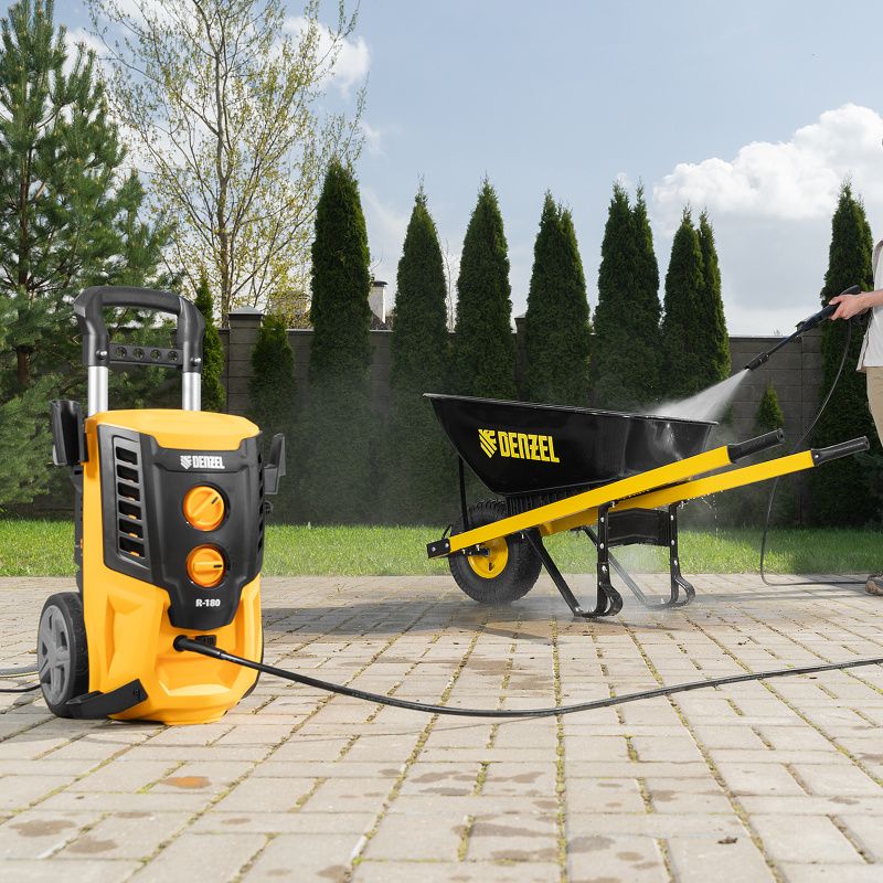 Моечная машина высокого давления R-180, 2200 Вт, 180 бар, 380 л/ч, колесная// Denzel, 58238