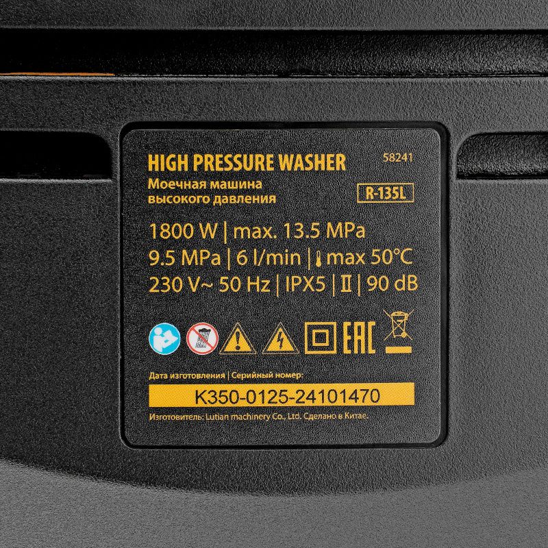 | Комплектация* | мойка высокого давления - 1штручка - 1 штшланг высокого давления - 1 штпистолет - 1 штнасадка-удлинитель - 1 штрегулируемая насадка-сопло - 1 штбачок для моющего средства с насадкой пеногенератора - 1 шт входной штуцер с фильтром - 1 штбыстросъёмный адаптер для входного шланга - 1 штдержатель для пистолета - 1 шткронштейн для шнура питания - 1 штдержатель для шланга высокого давления - 1 штигла для прочистки сопла - 1 шткомплект крепежа - 1 штруководство по эксплуатации с гарантийным талоном - 1 шт |
