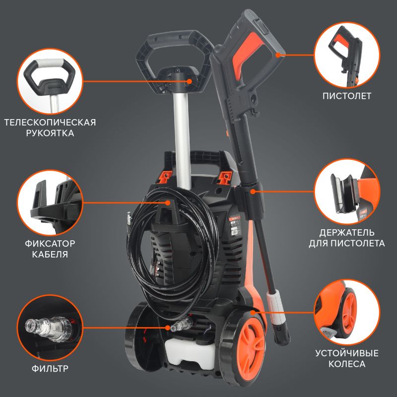 | Комплектация* | Моющий аппарат; Шланг; Пистолет; Коннектор для шланга; Фильтр; Инструкция по эксплуатации |