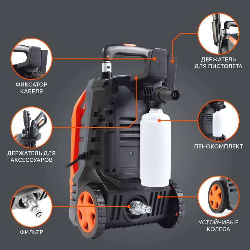 2. Удобство использования: мойка оснащена удобной ручкой и колесами, что обеспечивает легкость перемещения и маневрирования. Компактный размер и легкий вес делают эту мойку идеальным выбором для использования в любых условиях.