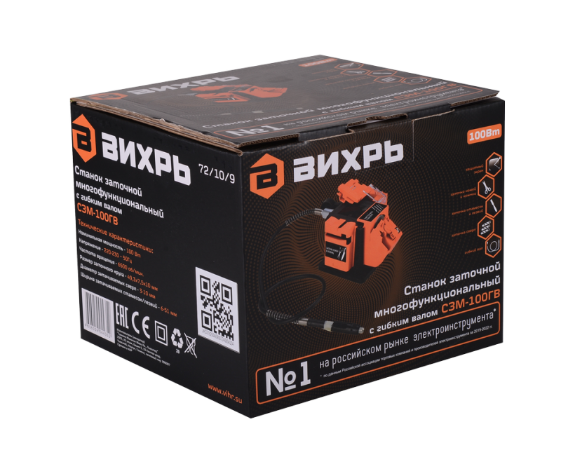 Станок заточный Вихрь СЗМ-100ГВ многофункциональный с гибким валом, 72/10/9
