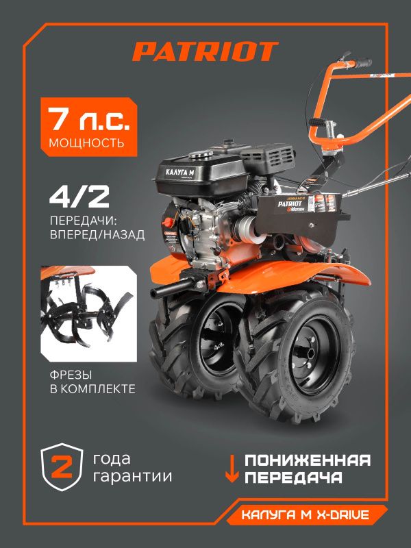 Мотоблок бензиновый Patriot Калуга М с колесами X-Drive, 440107004