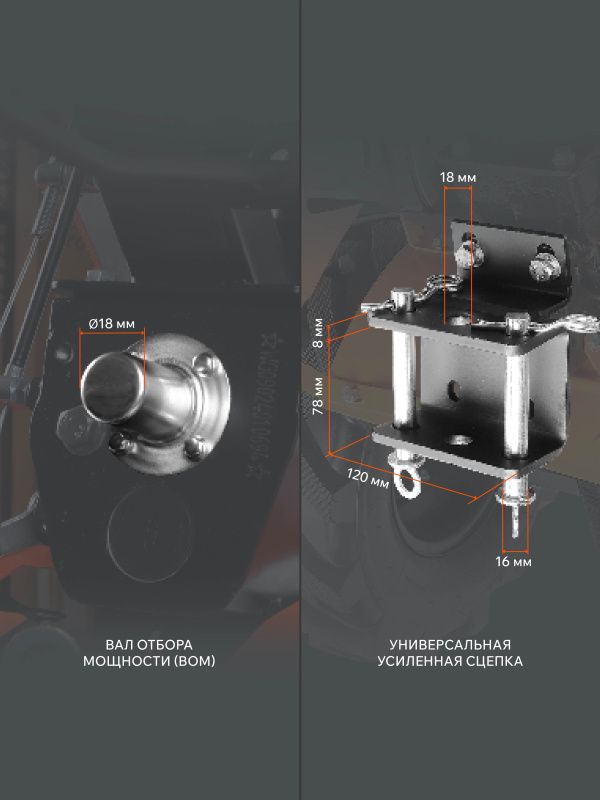 | Отбор мощности | ВОМ : D=18 mm , Шпонка 6*6 мм |