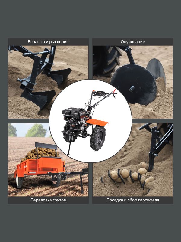 Мотоблок изготовлен из высококачественных материалов, что обеспечивает его надежность и долговечность. Вы можете быть уверены, что этот мотоблок прослужит вам долгие годы, не теряя своих качеств и производительности.
