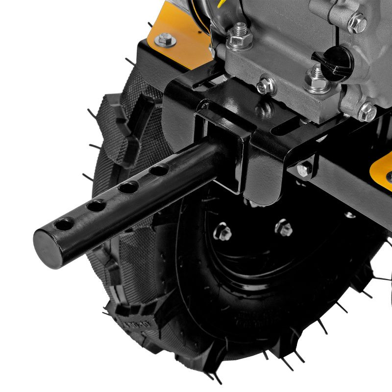 Мотоблок также обладает высокой маневренностью и легкостью управления. Он оснащен передними и задними колесами, что обеспечивает устойчивость и удобство при перемещении по участку. Благодаря своей компактности, мотоблок легко маневрирует даже в узких проходах и труднодоступных местах.