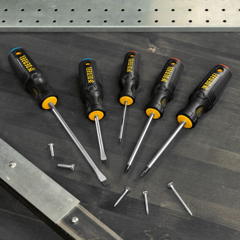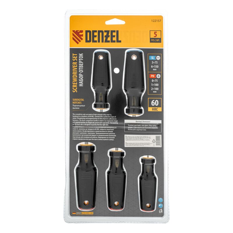 Набор отверток, 5 шт., PH+SL, S2, 3к рукоятка Denzel, 122157