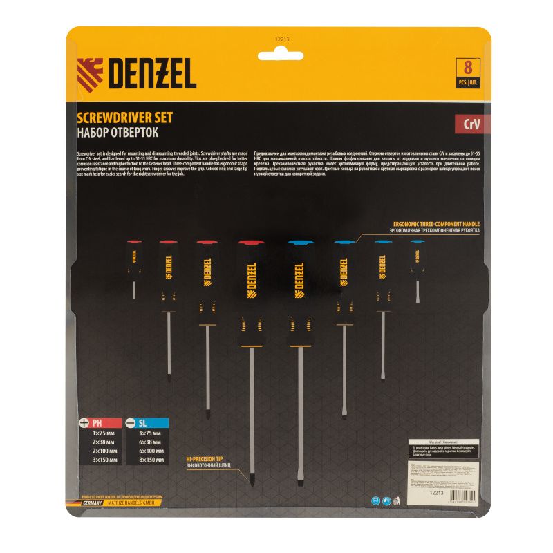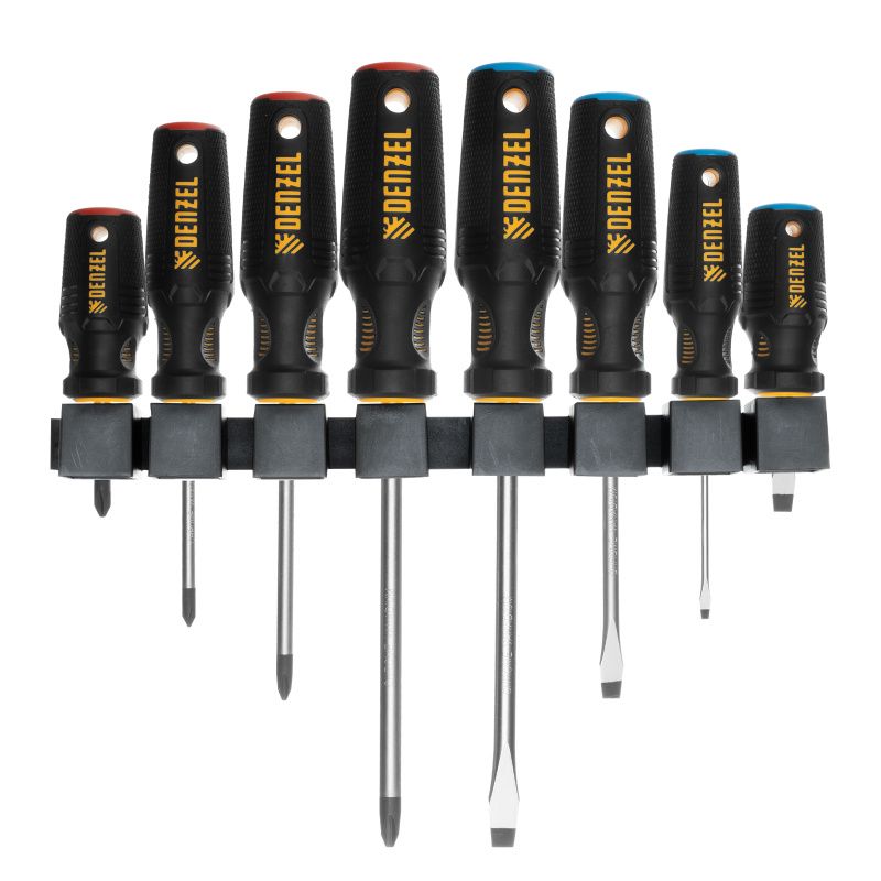 Набор отверток, 8 пр., CrV, трехкомпонентная рукоятка Denzel, 12213