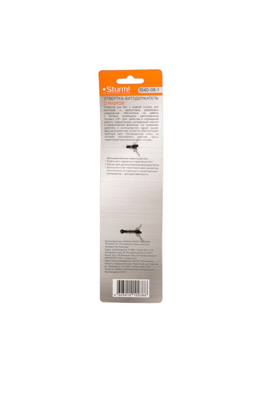 Отвертка-битодержатель с муфтой, магнитный наконечник, CrV, Sturm, 1040-06-1